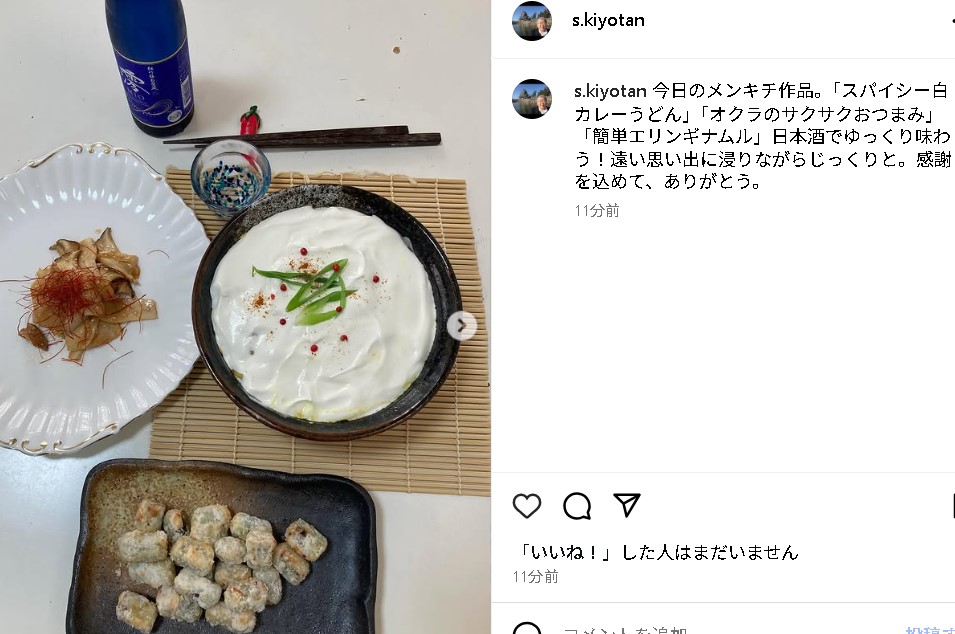 「白カレーうどん、なかなか衝撃な美味しさで、驚きました。おつまみ2品も簡単にできるけれど、しっかりした味わいのある逸品でした」