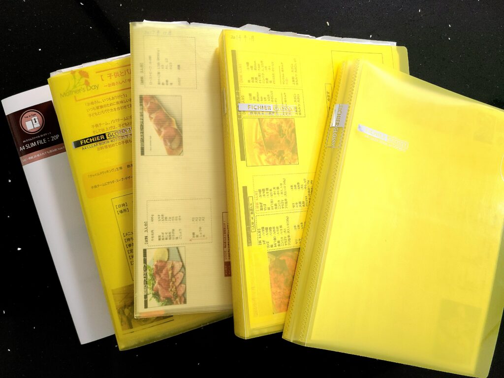 そして気が付けば分厚いレシピファイルが5冊になり! 考案レシピは412レシピ!