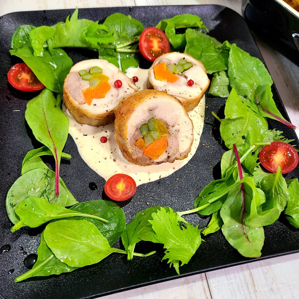 🍳「クリスマスカラーのチキンロール ホワイトソース仕立て」
