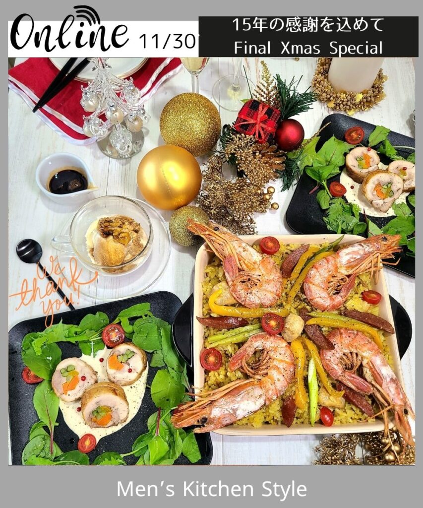 《オンライン料理教室》男性料理教室メンズキッチンFinal(受付)11月【15周年の感謝を込めて懐かしのX’mas3品】