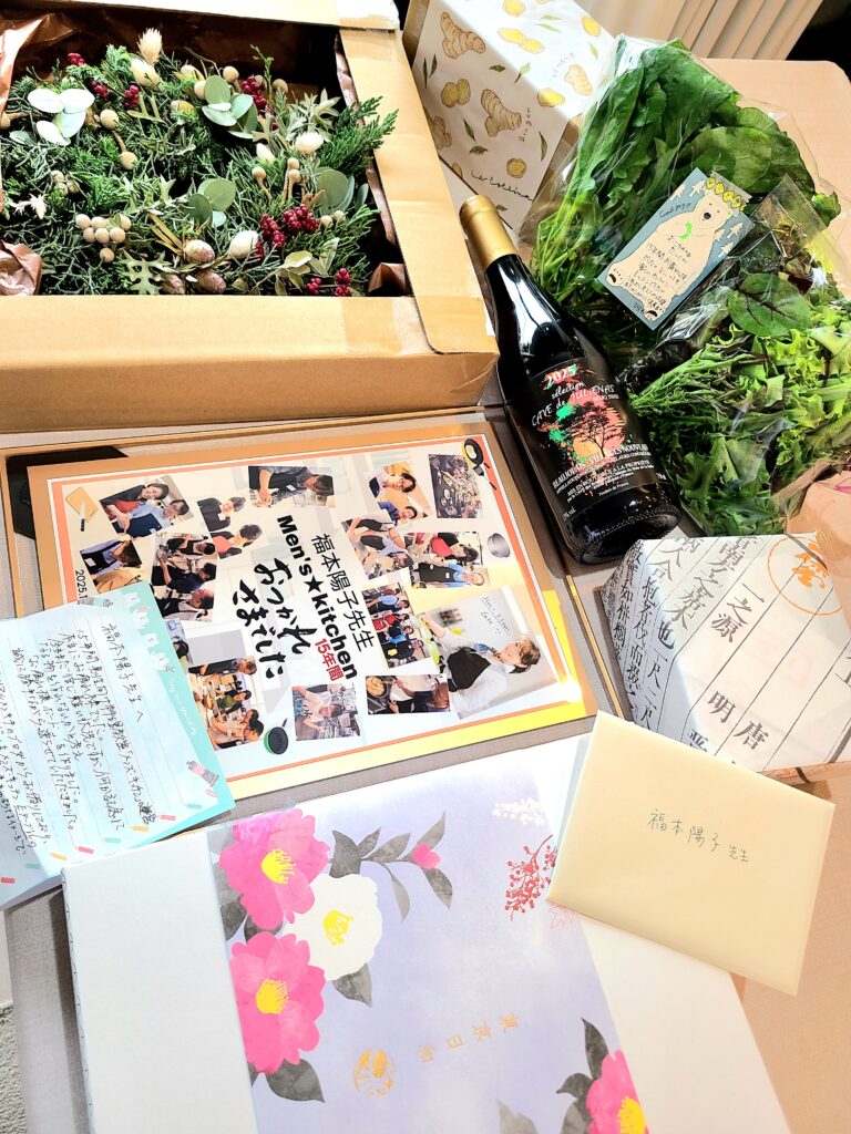 お花や手作り写真立てやお菓子、ワインなど暖かいお手紙と共に沢山の贈り物をいただきました